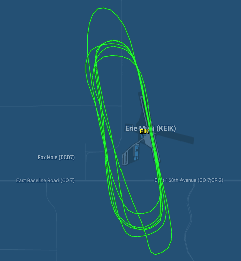 ERIE, CO – Two people were killed Saturday afternoon when their light sport aircraft crashed while practicing landings at Erie Municipal Airport (KEIK). Federal investigators are now pointing to challenging weather conditions and a potential loss of control during a go around maneuver. Flight aware also shows how many successful patterns were flown the same day before the accident.